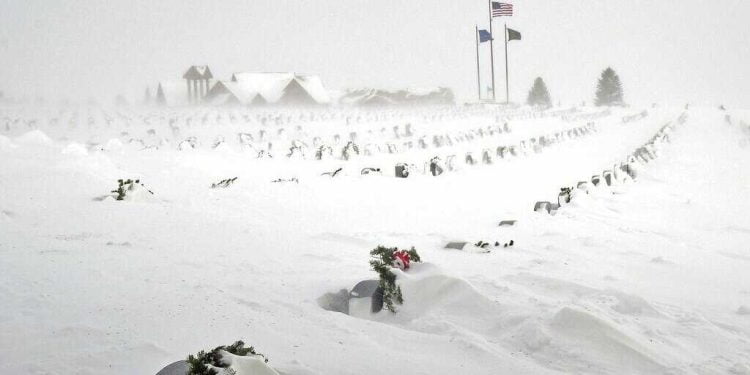 Forecasters said a bomb cyclone — when atmospheric pressure drops very quickly in a strong storm — had developed near the Great Lakes, stirring up blizzard conditions, including heavy winds and snow.
