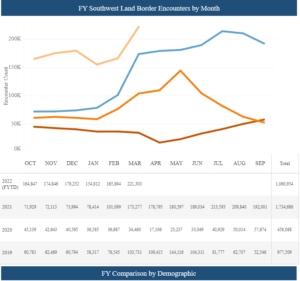 In the first six months of Fiscal Year 2022, 1,060,954 illegal migrants have crossed the Southern Border with about 45% of those illegals released into the country by the Biden Administration. During the same month in 2020, when President Donald Trump was in office, 17,106 illegals were apprehended.