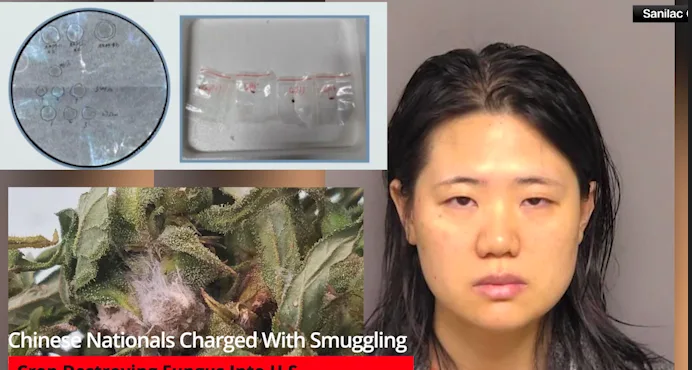 2 Chinese nationals have been charged with smuggling a ‘potential agroterrorism’ fungus into the U.S. which could destroy crops and poison U.S. citizens.