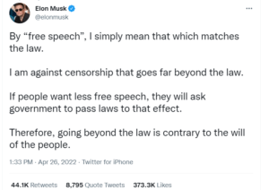 Musk has also pinned a Tweet to the top of his page clarifying, for those who don’t understand the concept of free speech, what his intentions are for the platform,