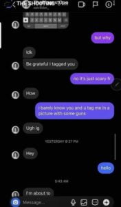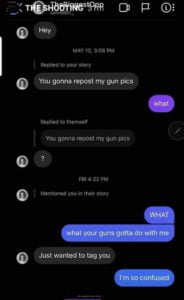 The account holder said it was ‘scary’ that Ramos tagged her in the photo of the rifles during a DM chat thread between the account @sal8dor_ and @epnupues