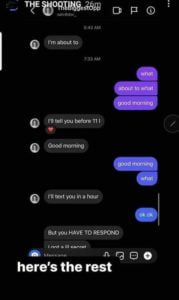 Then at 5:43 a.m. Tuesday @salv8dor_ messaged her “I’m about to”.