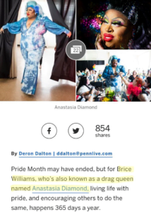 Brice Williams is also a board member of the Franklin County Coalition for Progress, serves on the Pride Franklin County Committee, and the United Way of Chambersburg’s Diversity, Inclusion, and Equity Committee. He has been a prominent advocate for LGBTQ rights especially in Chambersburg, championing the LGBTQ Non-discrimination ordinance push in 2021, given a FAB Rising Star Award 2020 by the the LGBT Center of Central PA, is or was recently an HIV medical case manager at Keystone Health Center in Chambersburg, and currently works for GLO Harrisburg, a center that offers a “safe space” for LGBTQ+ youth of color. Williams is also a licensed social worker with a Masters Degree in Social Work from Shippensburg University.