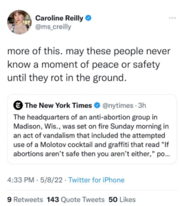 “More of this. may these people never know a moment of peace or safety until they rot in the ground.”