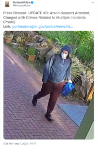 “Our arson investigator got involved in the case and since then she has been chasing this suspect and connecting him to other incidents,” said Kevin Allen of PPB. “So we know the incidents go back to April 30th at this point and she is still working to see if there are any other cases that might be related.”