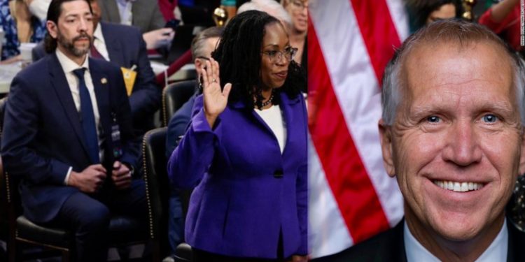 <iframe class="rumble" src="https://rumble.com/embed/vvmpu5/?pub=i5yqp" width="640" height="360" frameborder="0" allowfullscreen="allowfullscreen"></iframe> The confirmation hearings continue for Federal appeals court Judge Ketanji Brown Jackson who was nominated by Joe Biden to be on the Supreme Court.